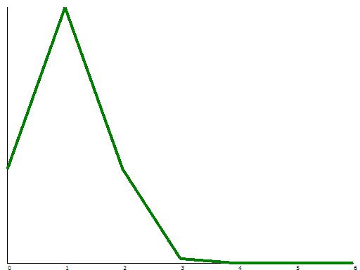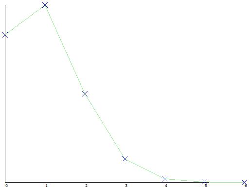 die Wahrscheinlichkeit von 0 auf 0.334897977. Der nächste Wert von k ist gleich